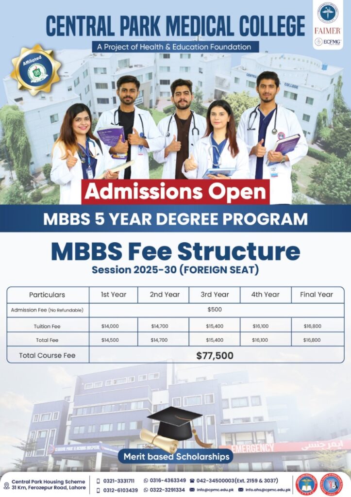 CENTRAL PARK MEDICAL COLLEGE, LAHORE.